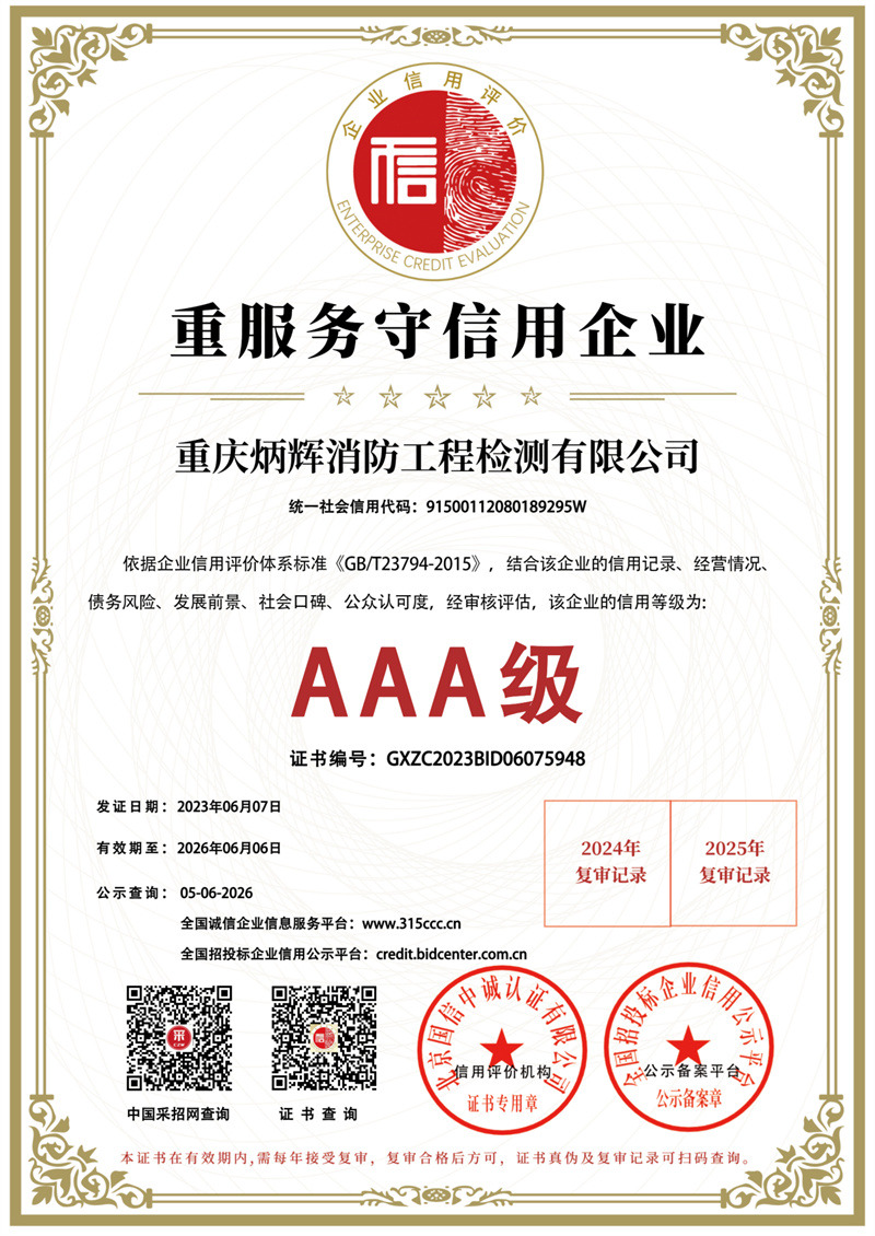 AAA级重服务守信用企业证书