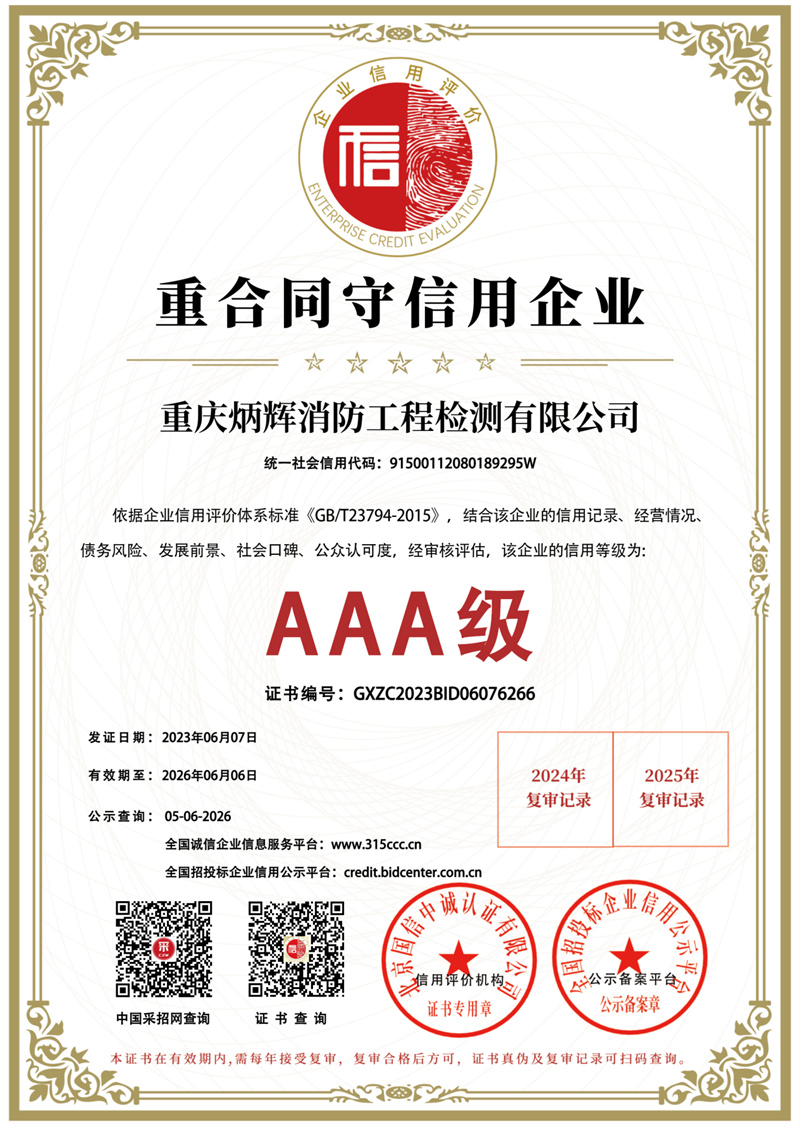 AAA级重合同守信用企业证书